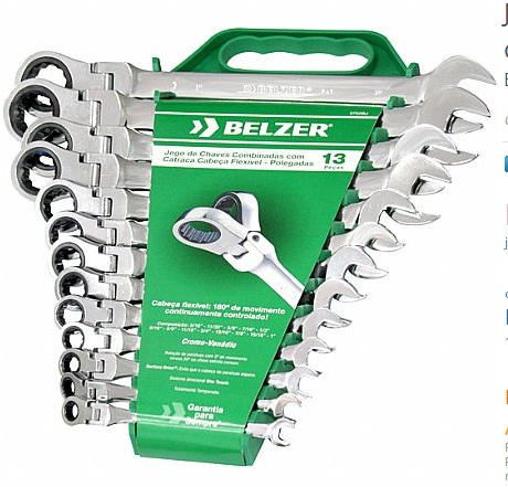 • JOGO DE CHAVES COMBINADAS COM CATRACA CABEÇA FLEXIVEL 9702BJ BELZER