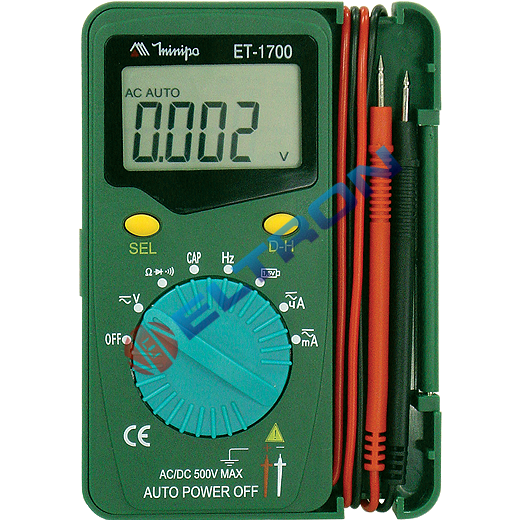 Carregando...Instrumento digital de bolso, que possui função de congelamento da leitura, mudança de faixa automática, desligamento automático, estojo protetor e LCD de 3 3/4 dígitos.