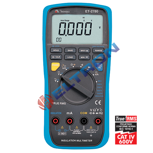 • Segurança/Conformidade: IEC/EN61010 categoria de sobretensão CAT III 1000V e CAT IV 600V