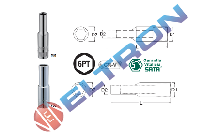 ST11405SC Soquetes Sextavados Longos 1/4" CR-V Sata 8MM