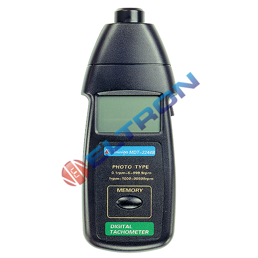 Realiza medidas de RPM por meio foto-eletrônico. Inclui como acessórios as fitas refletoras.