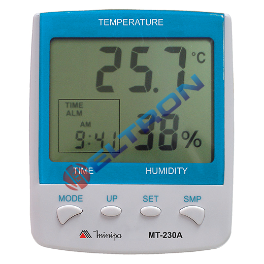 Instrumento voltado para o monitoramento de temperatura e umidade relativa ambiente. Possui sensor interno, relógio integrado, despertador, leitura máxima e mínima, com precisão básica para temperatura de ± 1°C e umidade relativa de ± 8%.