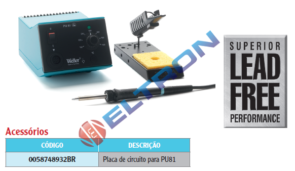 A Série Weller WS foi desenvolvida para especialistas em eletrônica. A temperatura da ponta é eletronicamente controlada. A temperatura máxima