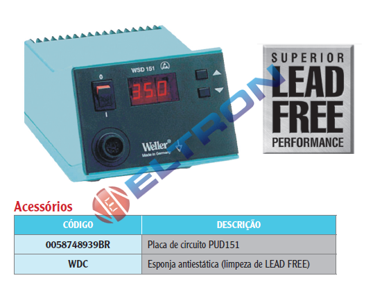 • Faixa de temperatura 50ºC a 550ºC para unidade de solda / WSP150 50ºC e 450ºC para outros ferros
